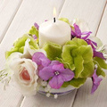 Fioletowo-kremowo-zielona kompozycja ze świecą 15/15 cm
