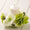 Kremowo-zielona kompozycja ze świecą 15/15 cm