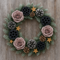 ( ilość produktów: 179 )Wianek świąteczny na naturalnym igliwiu z czarnymi lotosami, różami i szyszkami do kompozycji i stroików