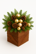 Świąteczny Flowerbox 20–25 cm z czerwonymi różami i szyszkami – kolekcja GrandDeco