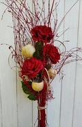Bukiet świąteczny róże z dodatkami z suszu egzotycznego i barwionymi gałązkami 40-50 cm
