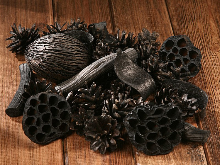 - Praktyczne zestawienie suszonych zabarwionych na czarno roślin.