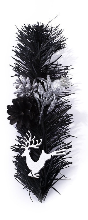 - dodatki:czarne i srebrne szyszki, brokatowa dzika róża, drewniany jeleń