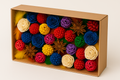 ( ilość produktów: 2 )Zestaw do dekoracji DIY 10 kolorów • szyszki, piórka, kulki ratan, kwiaty shola • prezent box
